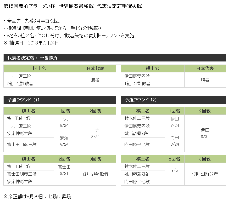 【農心杯】日本代表若手選抜戦、余正麒が脱落 2013/08/31 17:04 農心杯 | 囲碁のポータルサイト | 財団法人日本棋院 決勝は 一力vs鈴木or姚or内田伊田vs富士田or安斎 --公式ページの表記間違ってね?右側は2組だよね? 「memo」カテゴリの最新記事 タグ :#農心杯 < 前の記事次の記事 >
