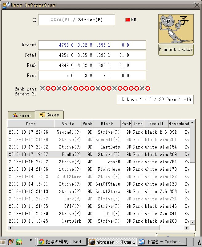 インターネット囲碁を何局か打った。 最初はよく置くことができなかったが相手もちょっとひどかった。 范蕴若とだったが彼は恐らく自身が勝ったのに石を投げて私に自信を与えようとしたようだ。