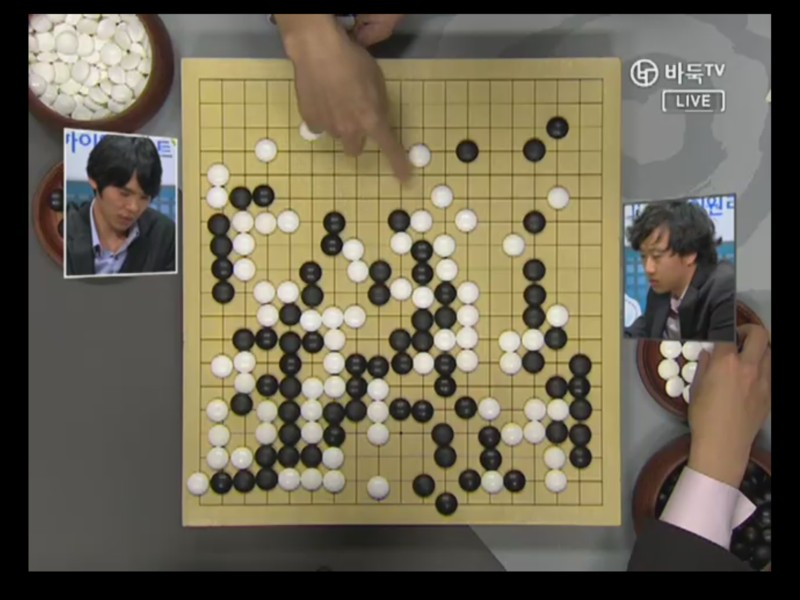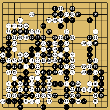 しかし下辺で簡明に処理しないで攻撃される余地を残し局面が少しずつ絡まった。95がチェ・チョルハンのよい手.イ・セドルは以後無理なけんかをするほかはなかったし勢いに押されなかったチェ・チョルハンが乱戦の最後勝者になった。