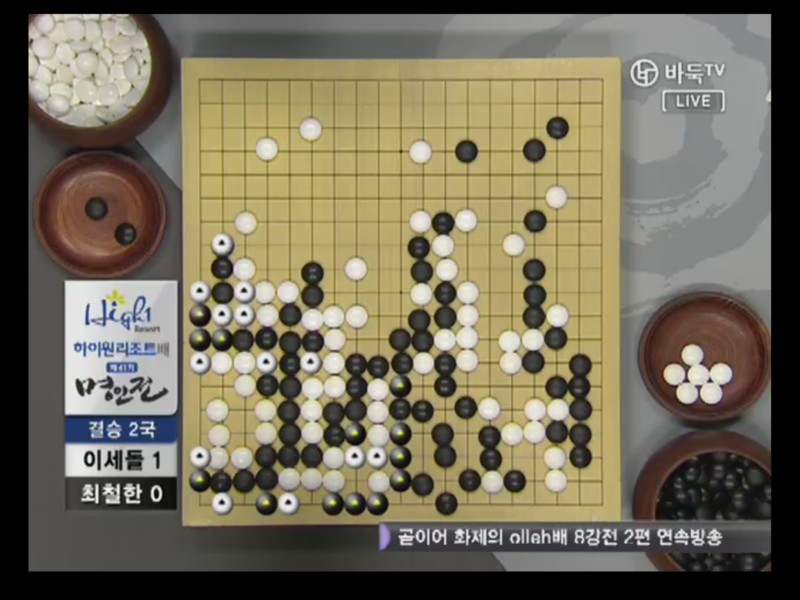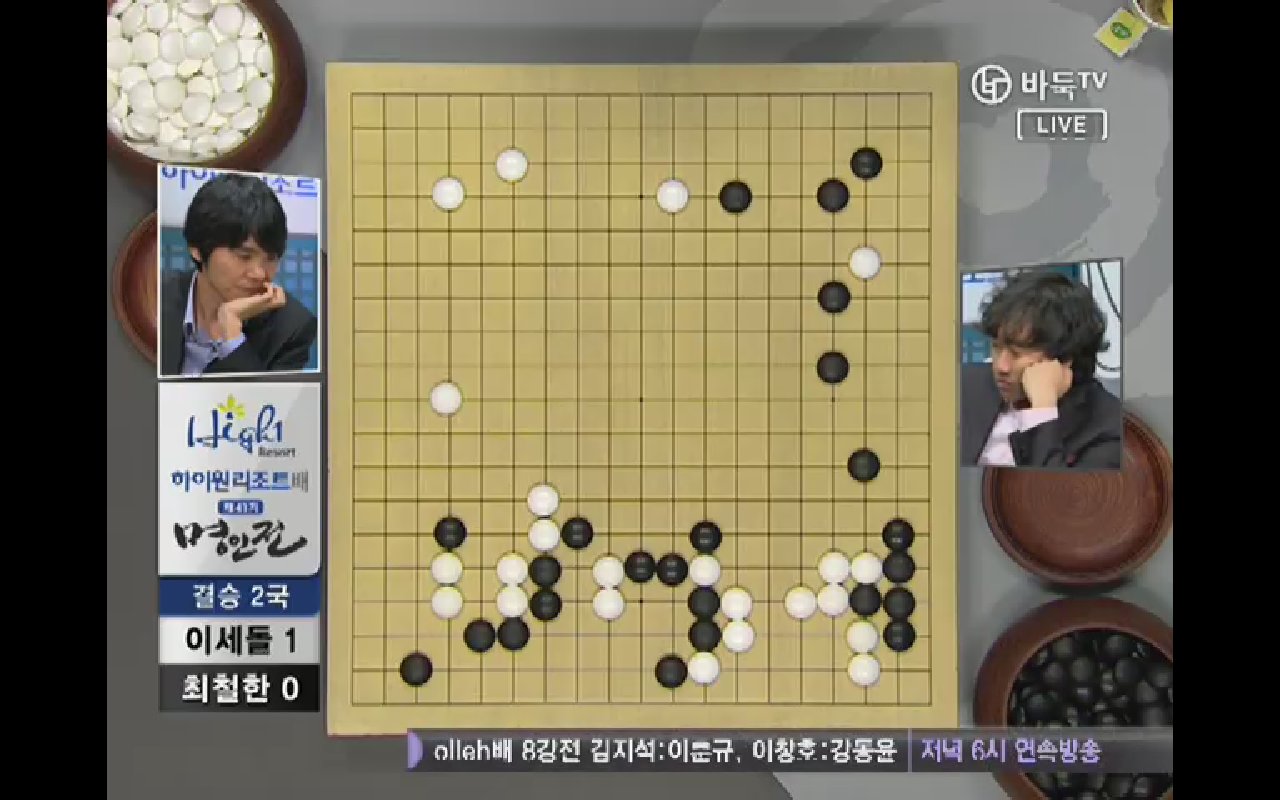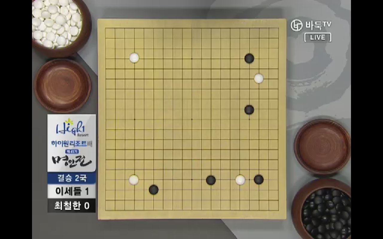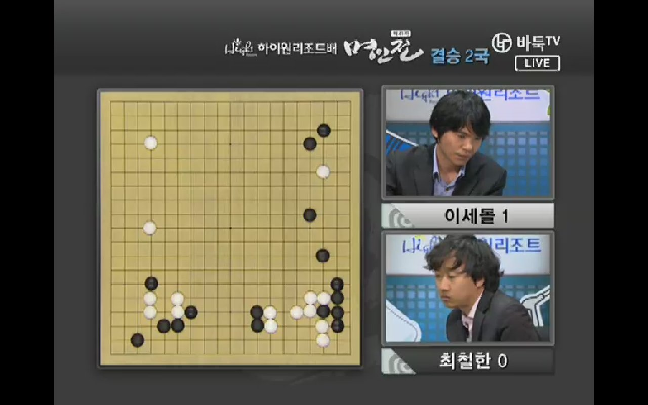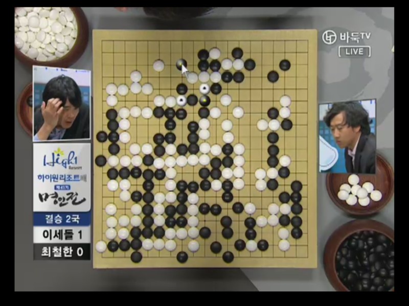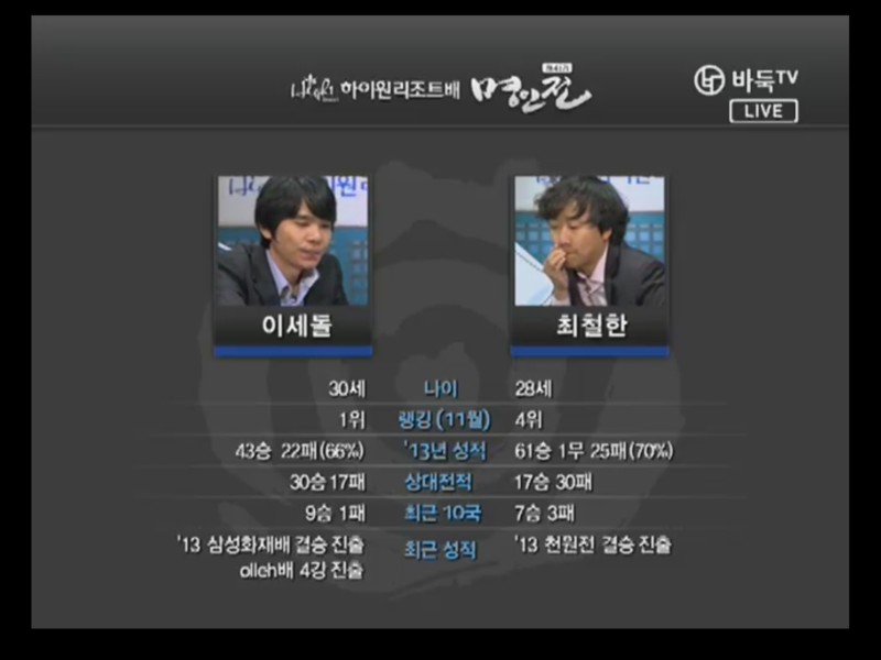 ●チェ・チョルハン9段vs ○イ・セドル9段結果:チェ・チョルハン、197手黒中押し勝ちチェ・チョルハンの実利とイ・セドルの発展性で出発. 1局の時普段と違った新鮮な着手を見せたイ・セドルは2局では空き隅を占めないで直ちにかかっていく事から独特の序盤を設計した。
