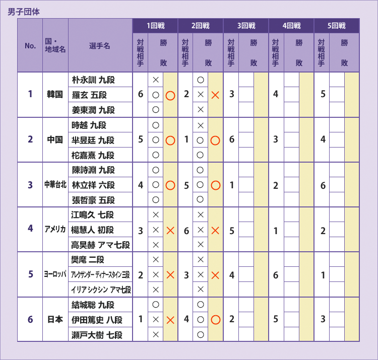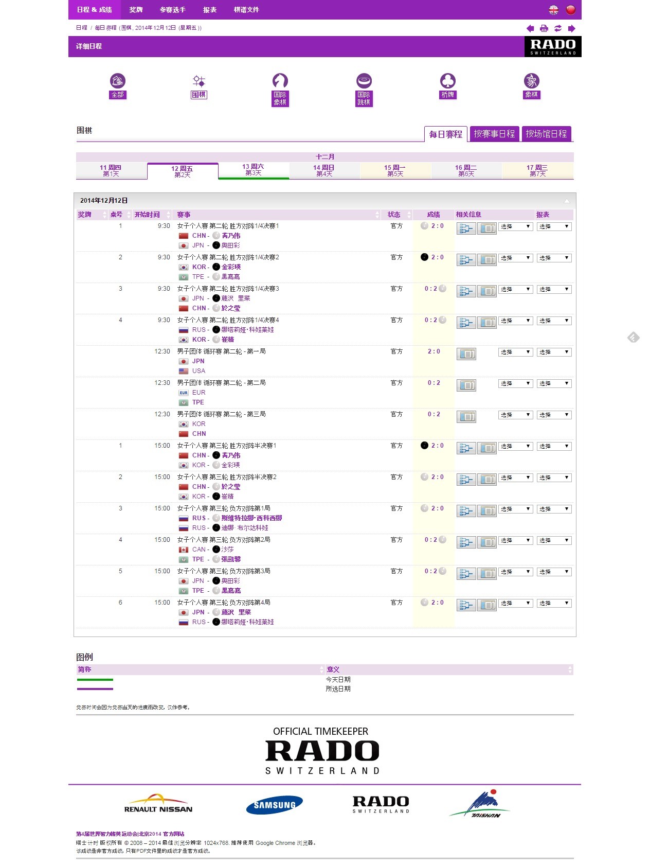 Schedule and results - World Mind Games - Sportaccord - 11-17 December 2014 Beijing男团第二轮战报: