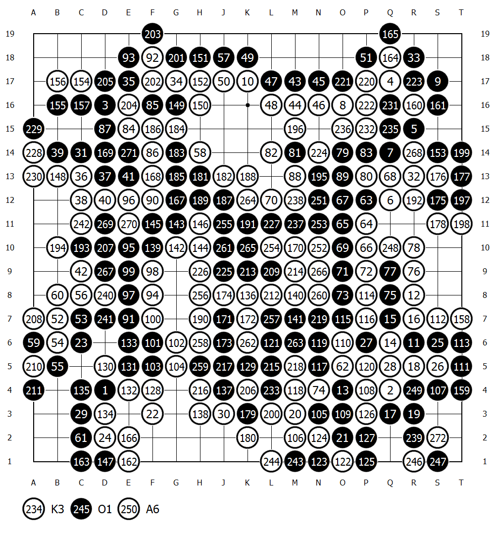 Fan Hui (Black), AlphaGo(White)