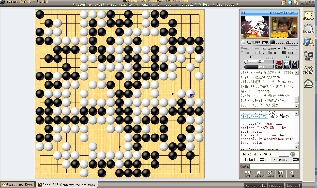 【AlphaGo】イ・セドルvsAlphaGo Googleディープマインドチャレンジマッチ第5局速報(※18:04更新終了)