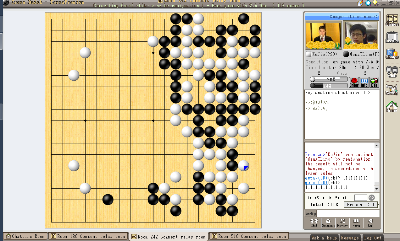 柯洁(中) 胜 孟泰龄(中)