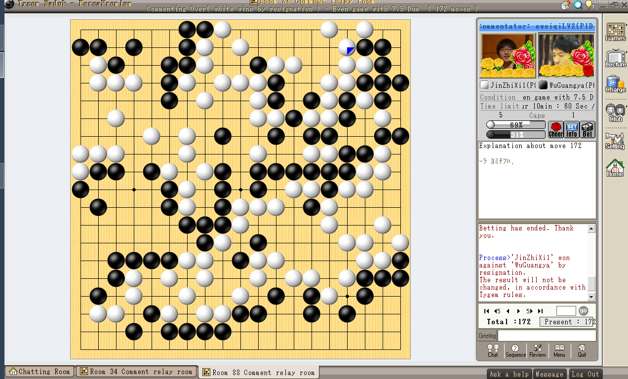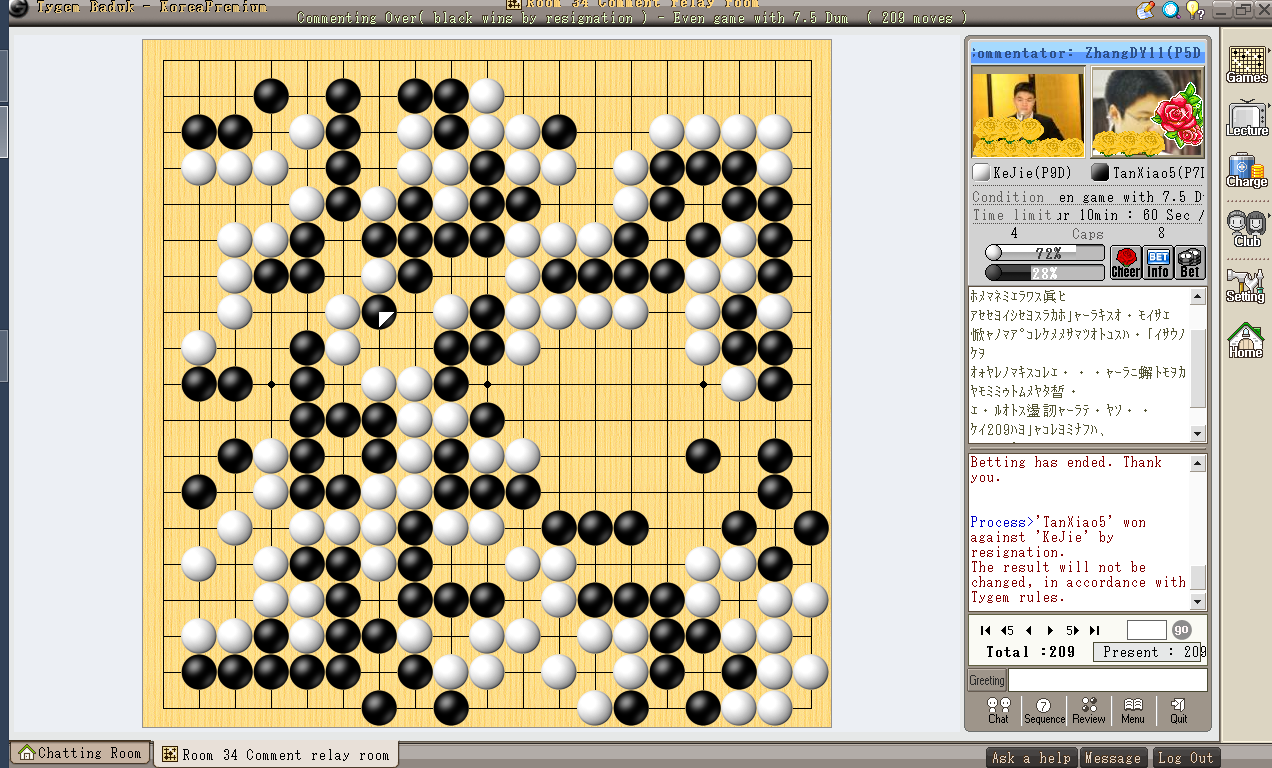 柯潔 ×-○ 檀嘯(主将戦)