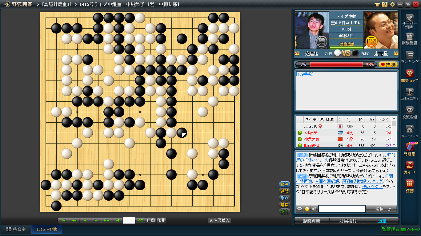 唐韋星九段(中)○-× 范廷鈺九段(中)