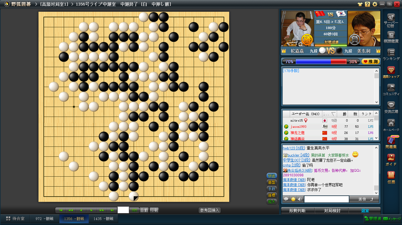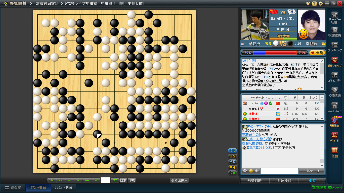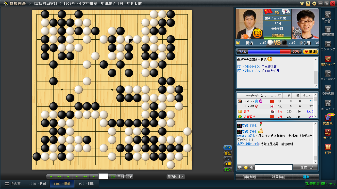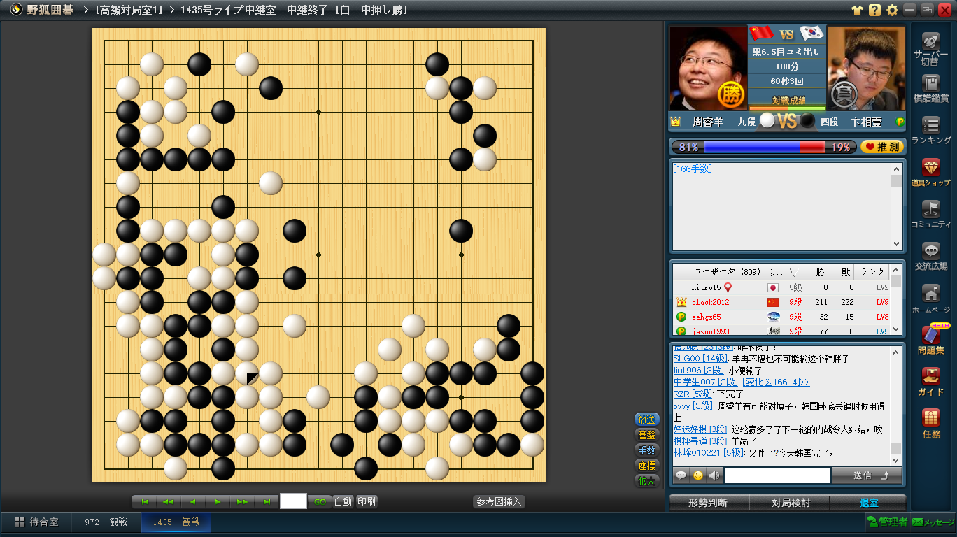周睿羊九段(中)○-× 卞相壹五段(韓)