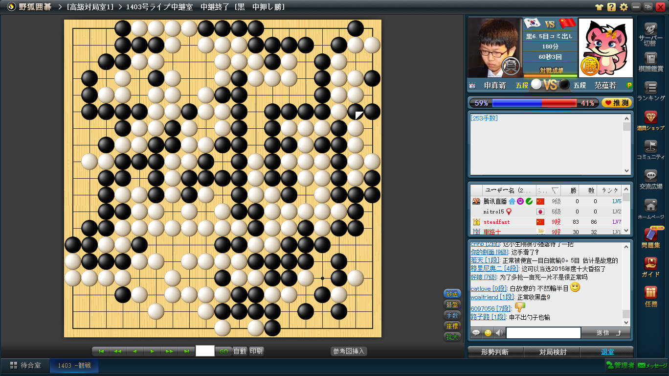 范蘊若五段(中)○-× 申真谞六段(韓)
